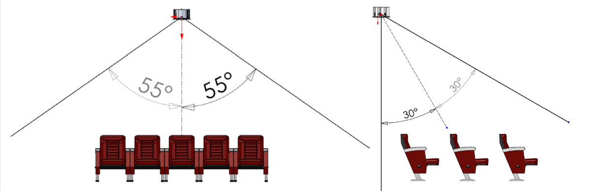 Projekt dostosowany został do instalacji w suficie z kątem 30° jako wzorcowym punktem odniesienia, pokrywając całe pasmo przenoszenia w szerszym promieniu +/- 55 ° od osi głośnika.